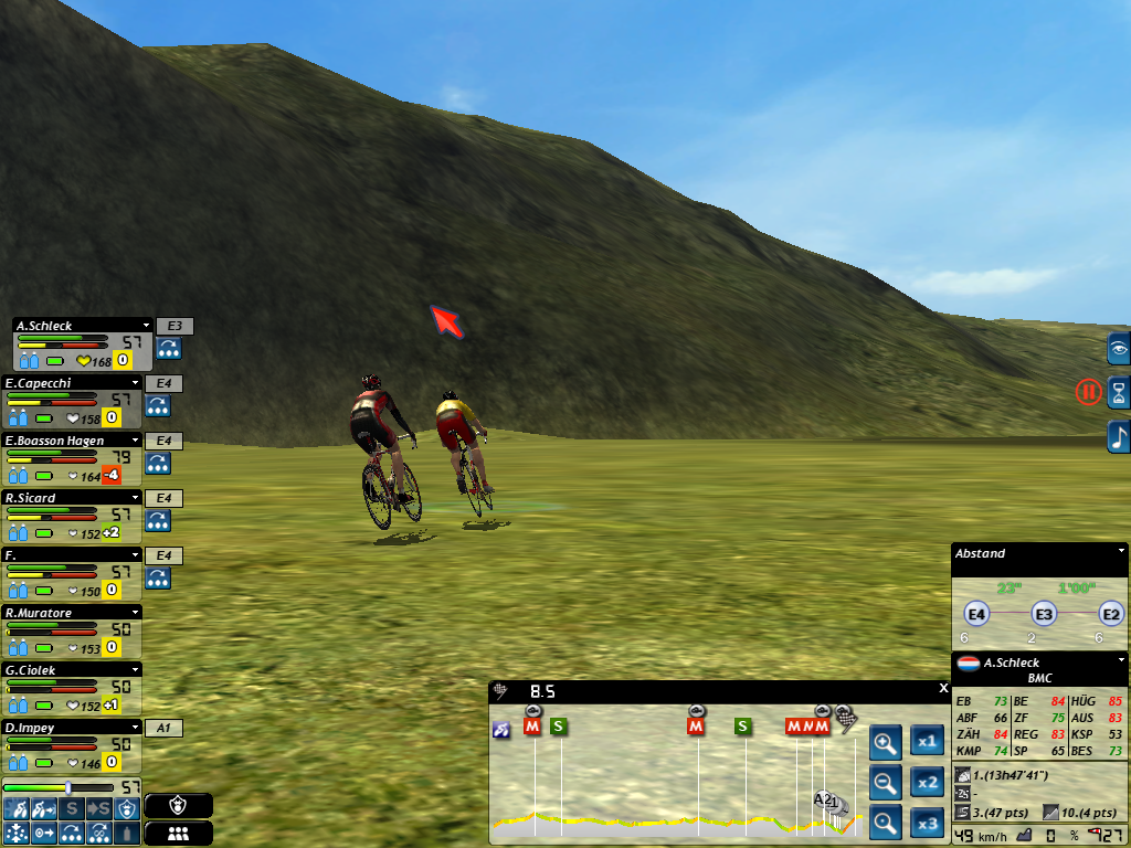 Andy Schleck and Luis Leon Sanchez are flying over grazing land and do not use the road...