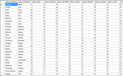 Hey, keep in mind people that one stat alone doesn't necessarily say too much about a rider when all comes to all. A rider who have a higher mountain-stat than you might think realistic might not be so super in the mountains after all if he doesn't have the stamina-stats to back it up. And same thing goes with many stats that to some extent walk hand in hand. In MOST cases I think Cya have done well with the stats, or so it seems at least. I will change some riders stats slightly though to make it as realistic as possible in my own eyes. It's a shame we don't see a screenshot with stamina stats, as that is probly the most central stat i nthe game.