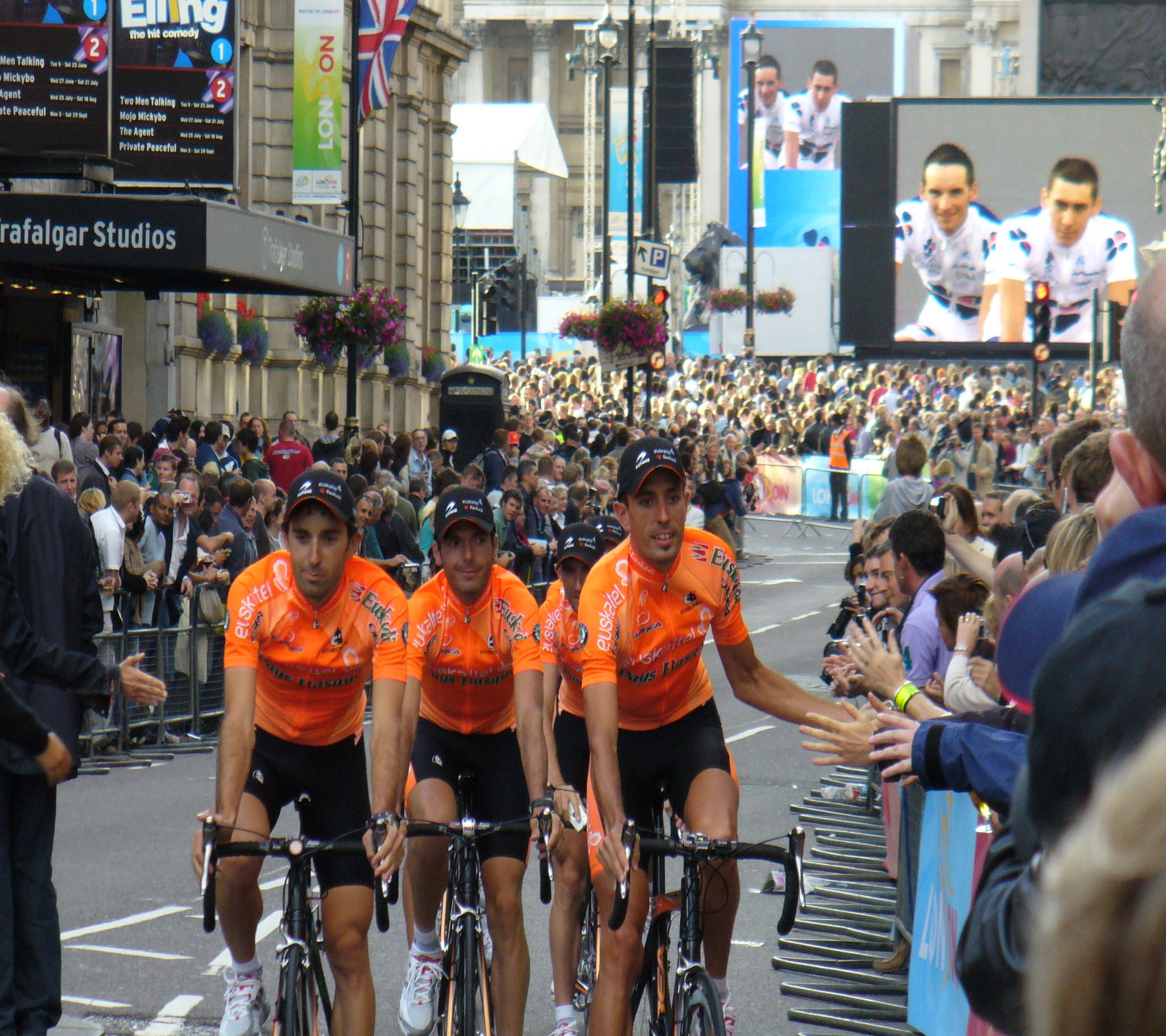 taken from the presentation of the riders - three Euskatel - Euskadi riders enjoying the night