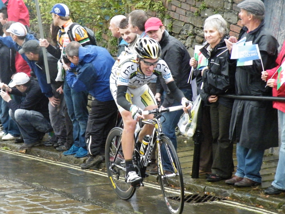 Marco Pinotti (HTC Columbia) climbing Constitution Hill at the end of Stage 3 of the Tour of Britain. 30th on the Stage.