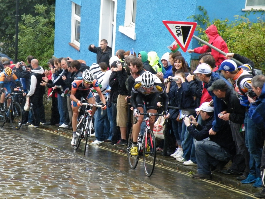 Stijn Neirynck (Topsport) and Ian Bibby (Motorpoint) climbing Constitution Hill at the end of Stage 3 of the Tour of Britain. 3rd and 2nd on the Stage.
