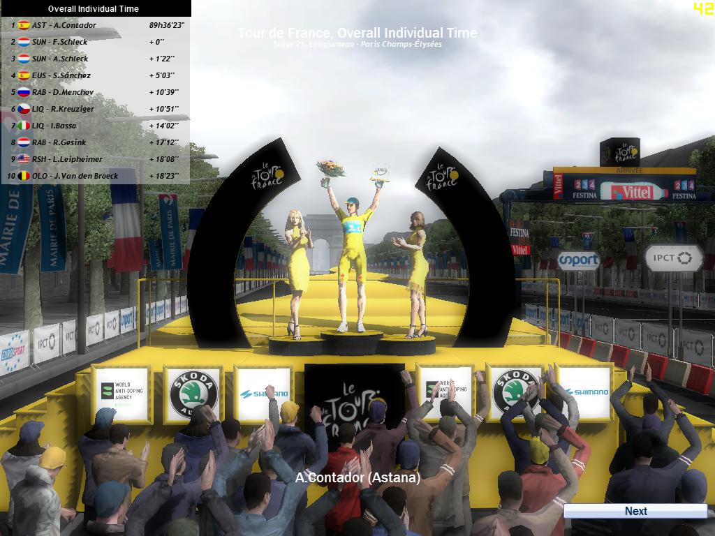 I was playng with leopard trek and sandy casar won the tour de france with a 0" gap, after a breakaway of 42 minutes