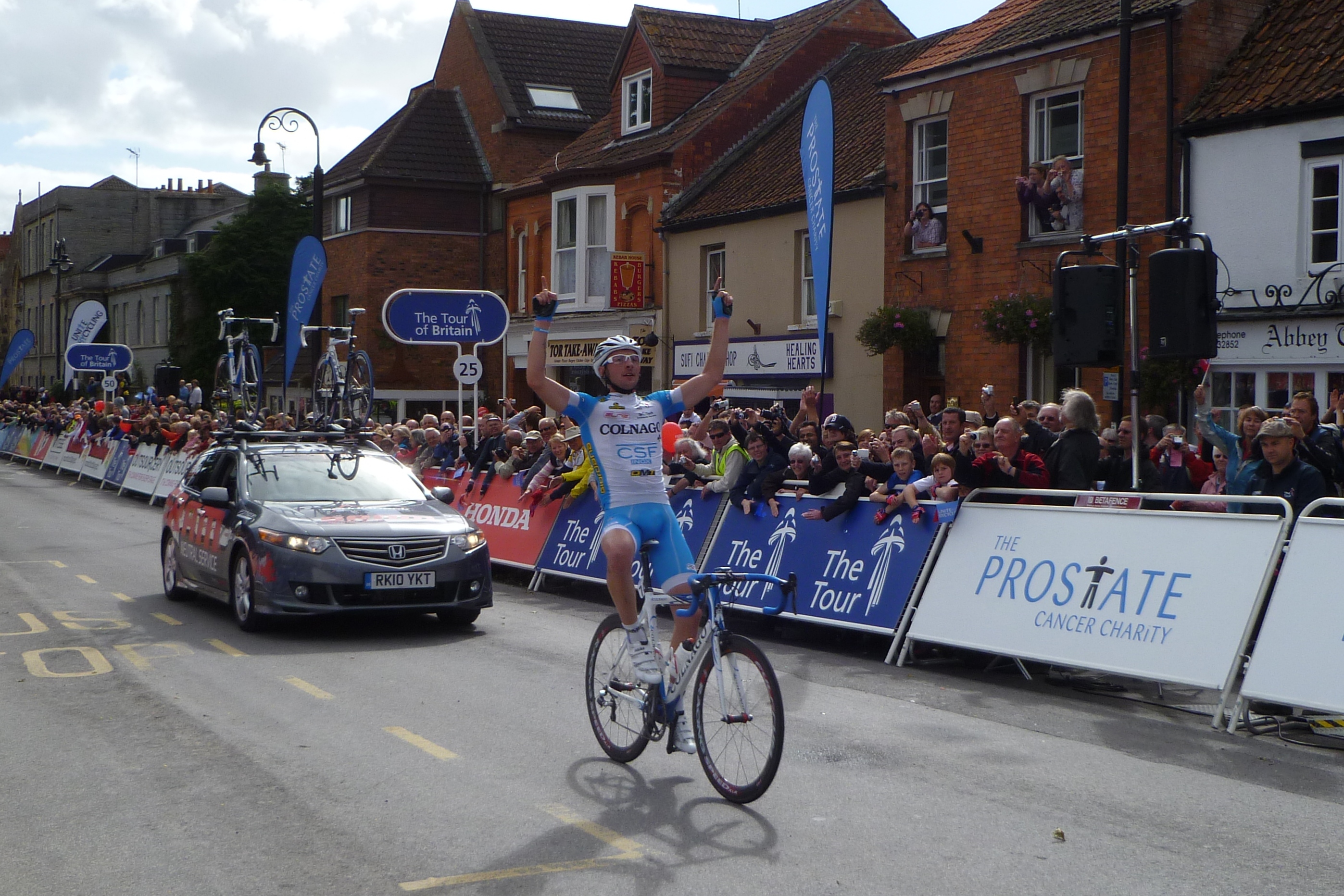 Marco Frapporti celebrates winning stage 5 of the Tour of Britain.