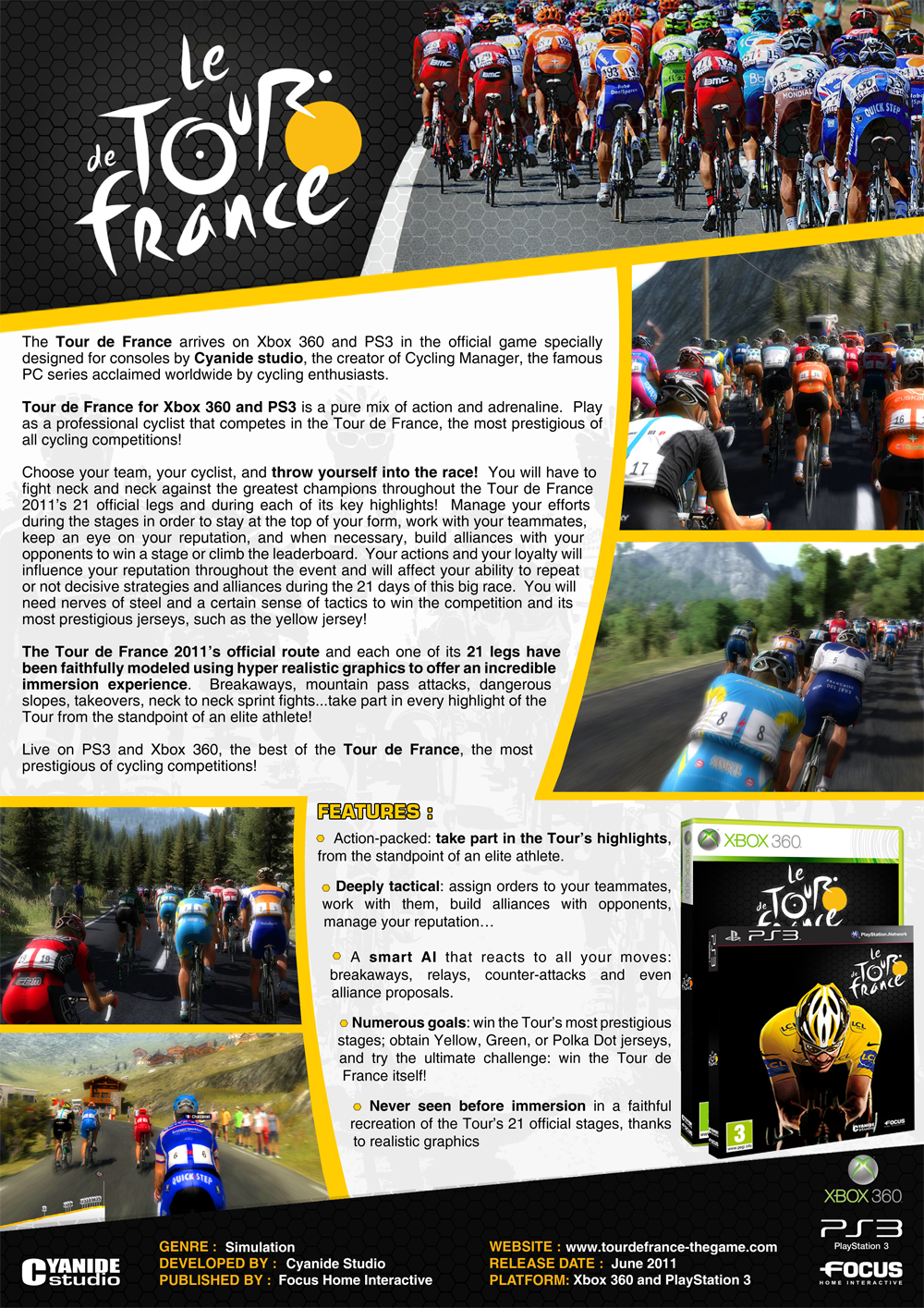 A description of the Playstation 3 / XBOX360 Tour de France 2011 game.
