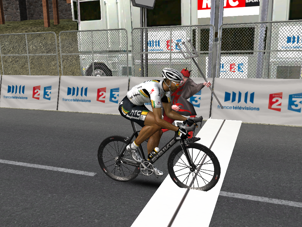 I don't know but the HTC rider seems to have crossed it first. Pfft