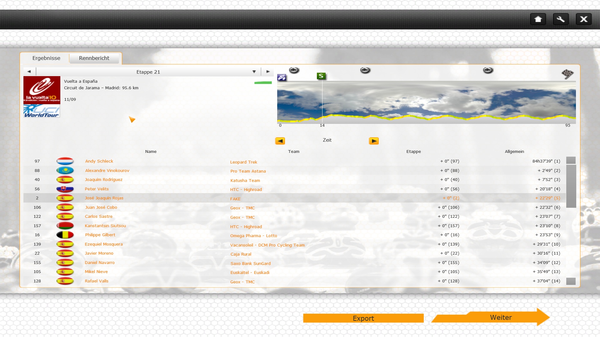 Jose Joaquin Rojas (in my custom team called "FAKE") achieves the 6th rank at this years vuelta. Stats for Rojas are the one from the PCM.daily's Expansion Pack. Rojas has 70 on mountains, and 74 on hills. And this is the result. Dear admin, was that really intended?