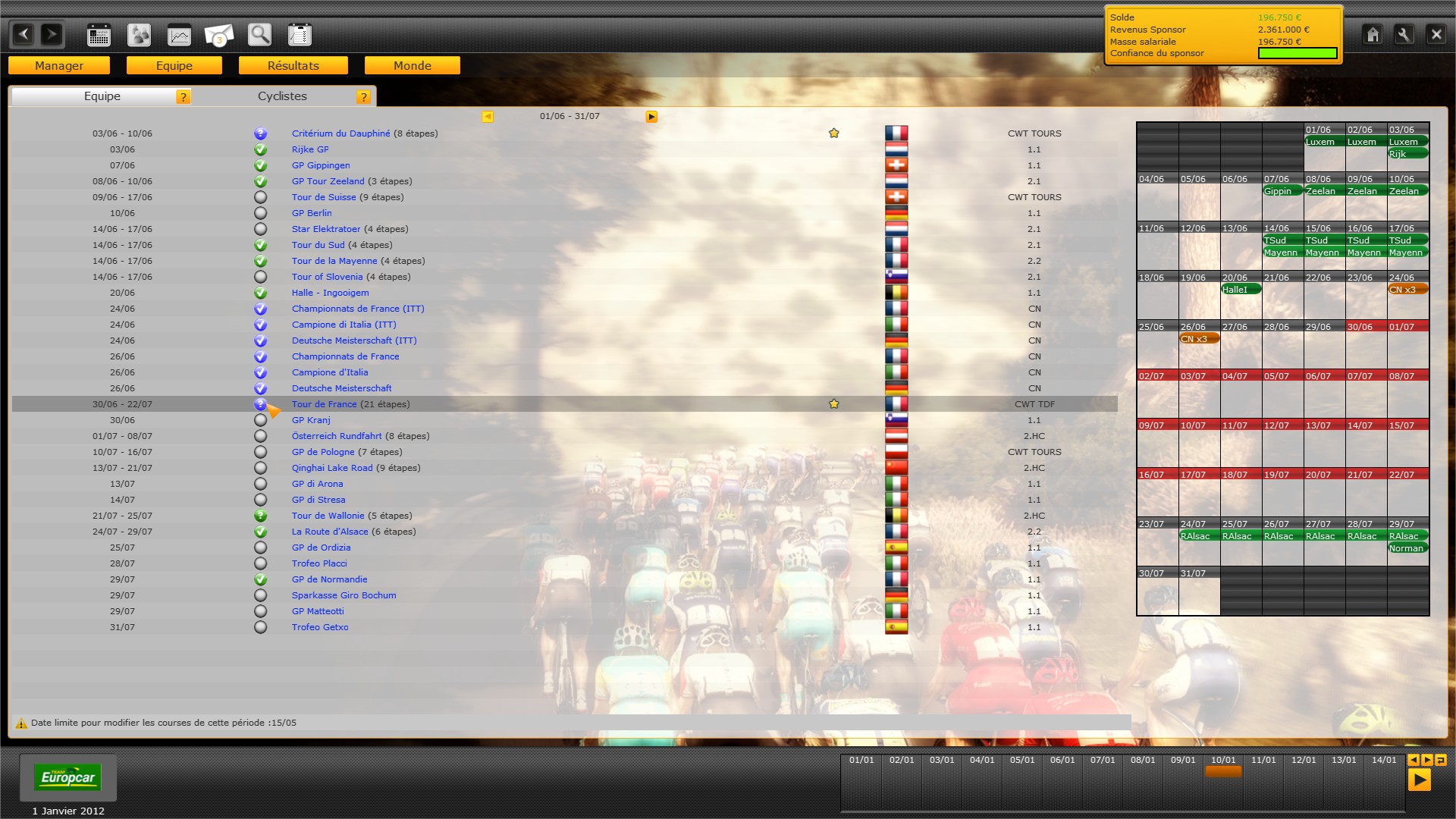 Seems like you have to know what races to ride much more in advance. Look at the warning in the left bottom corner.