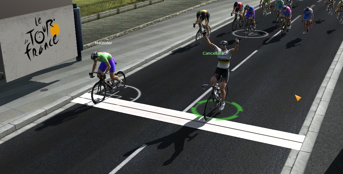 The King of premature celebration, Fabian Cancellara in the Tour wearing the Rainbow Jersey.
