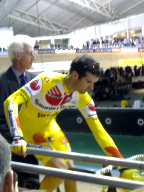 DAVO!!!!!!!!!!! so excited he just set up his bike right in front of us, we were on row 2 and he stopped right there for the Italian puruit - taken on my phone ;)