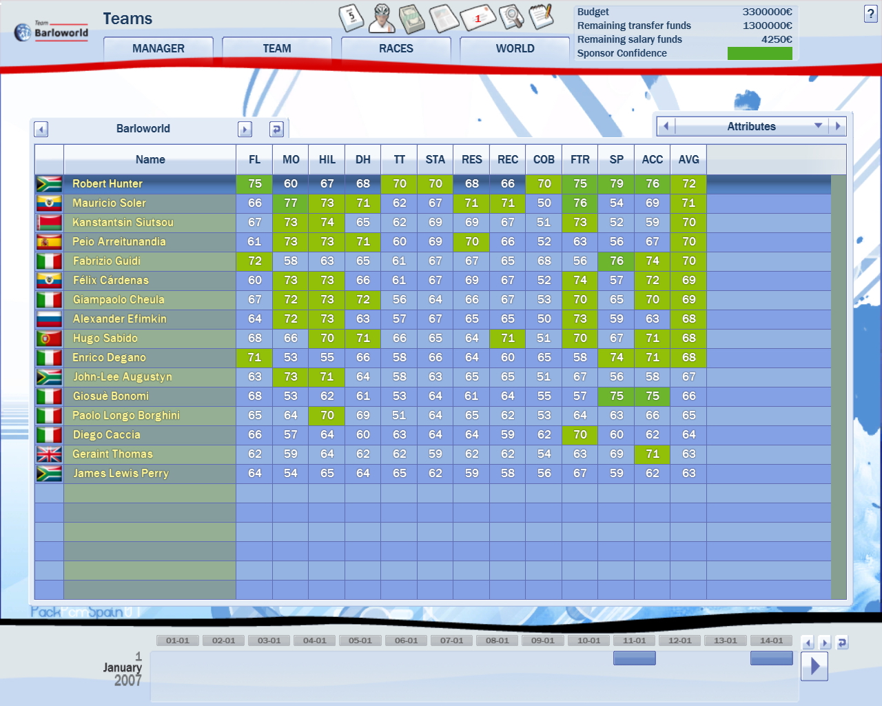 thank you Dankan, great stats obviously apart from Geraint's cobble stat, i don't see how a rider who won the junior P-R 3 years ago only deserves a 54COB stat