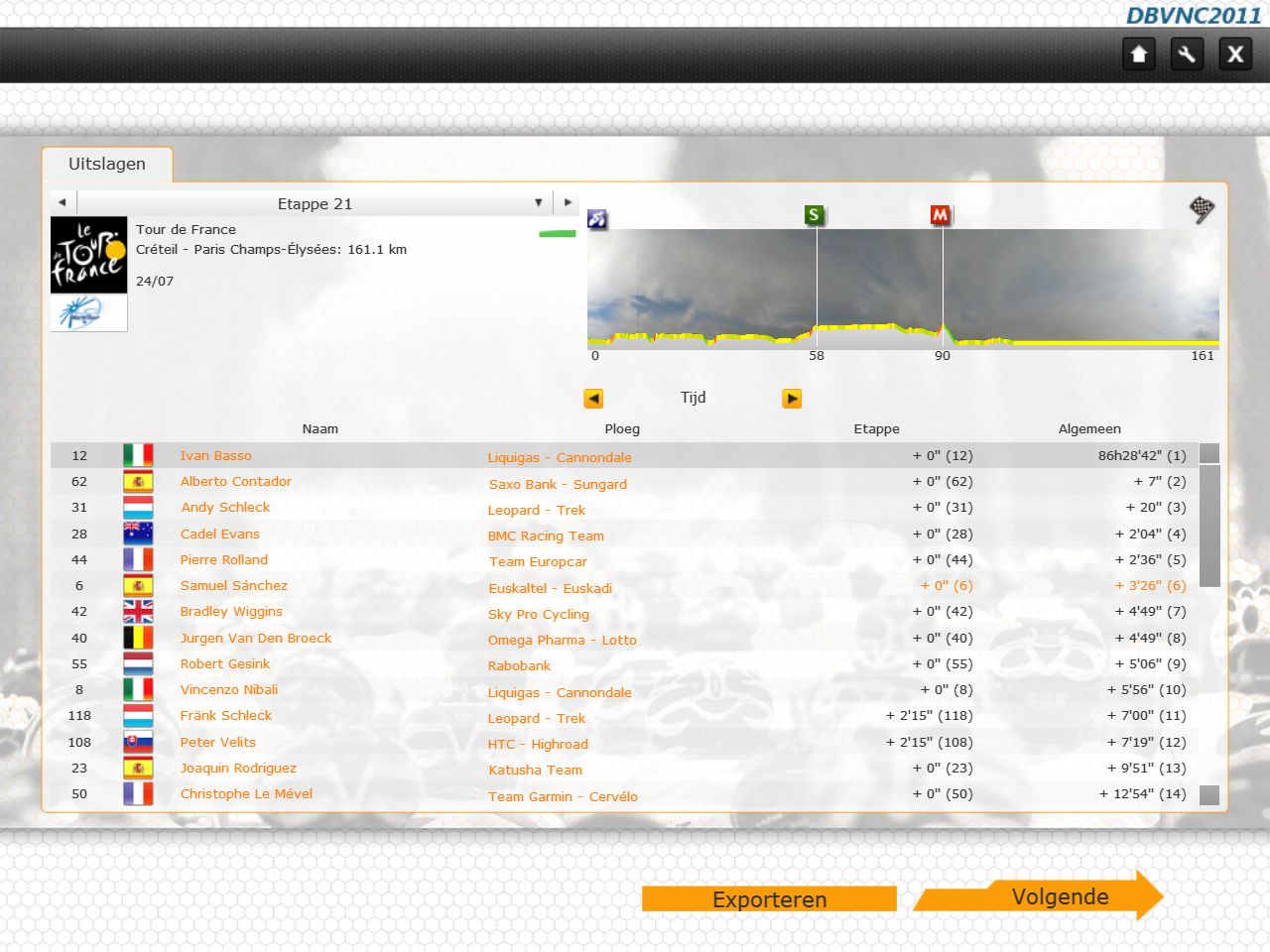 But the battle between Basso, Contador and Andy Schleck was epic. The result is clear from the screenshot.