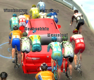 The race obviously got too much for Kashechkin, he was so desperate to abandon he rode into the car.