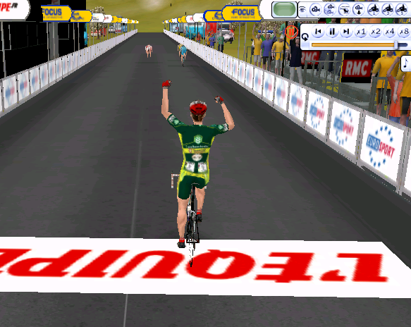You can't see which way the other riders go. That means he crossed the finish backwards! He actually won.