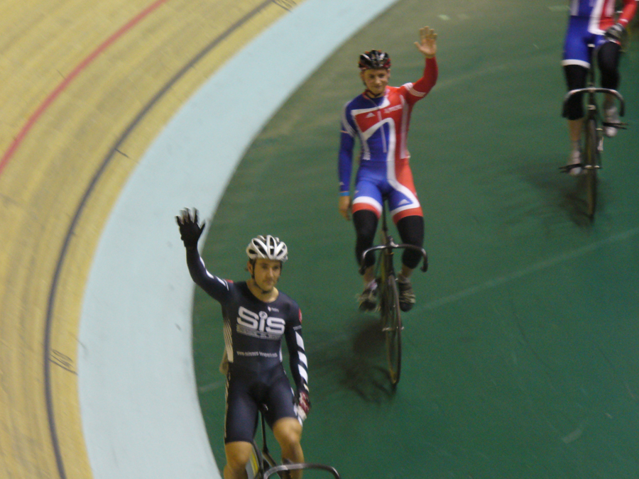 Its a lot colder riding in a velodrome then sitting in one :S and ive noticed alot with pros/neopros that they always seem to overdress as if contact with air might cause them to fall ill :lol: