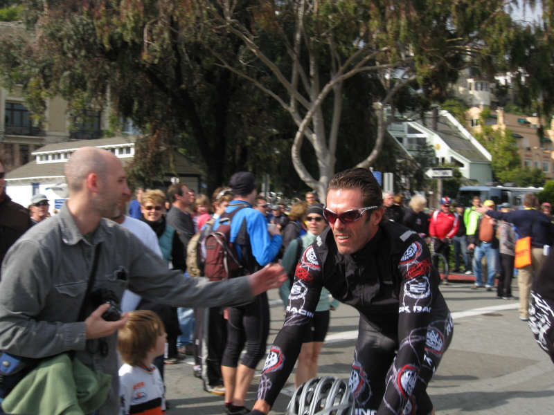 It was kind of strange, seeing him. He was walking around like a Rock Start had this whole entourage of girls and bodyguards dressed in black. Still gotta love the guy. 41yrs old out for three years and take a podium spot on the stage to Sacramento, alongside Boonen!!