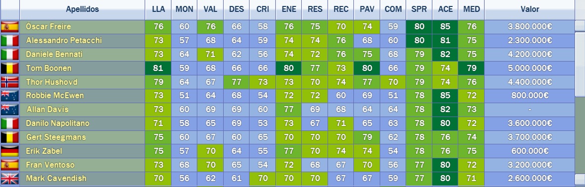 except that i would put McEwen sprinting stats 79 as i feel he is as good as boonen en hushovd in the sprint, but that's my opinionGrin