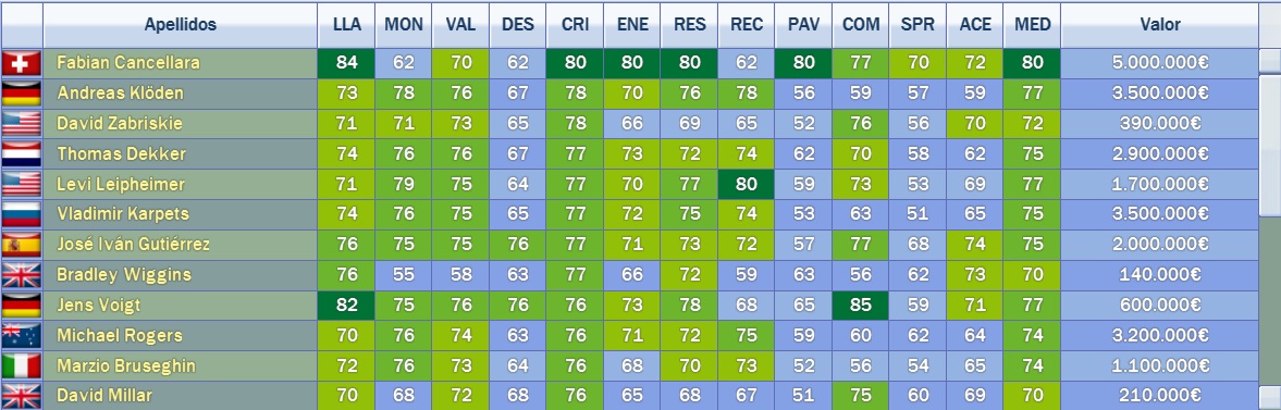 Photo Albums > PCM 07: PCM.daily DB > Stats sorted by Timetrialling ability First photo Previous Photo Next Photo Last photo