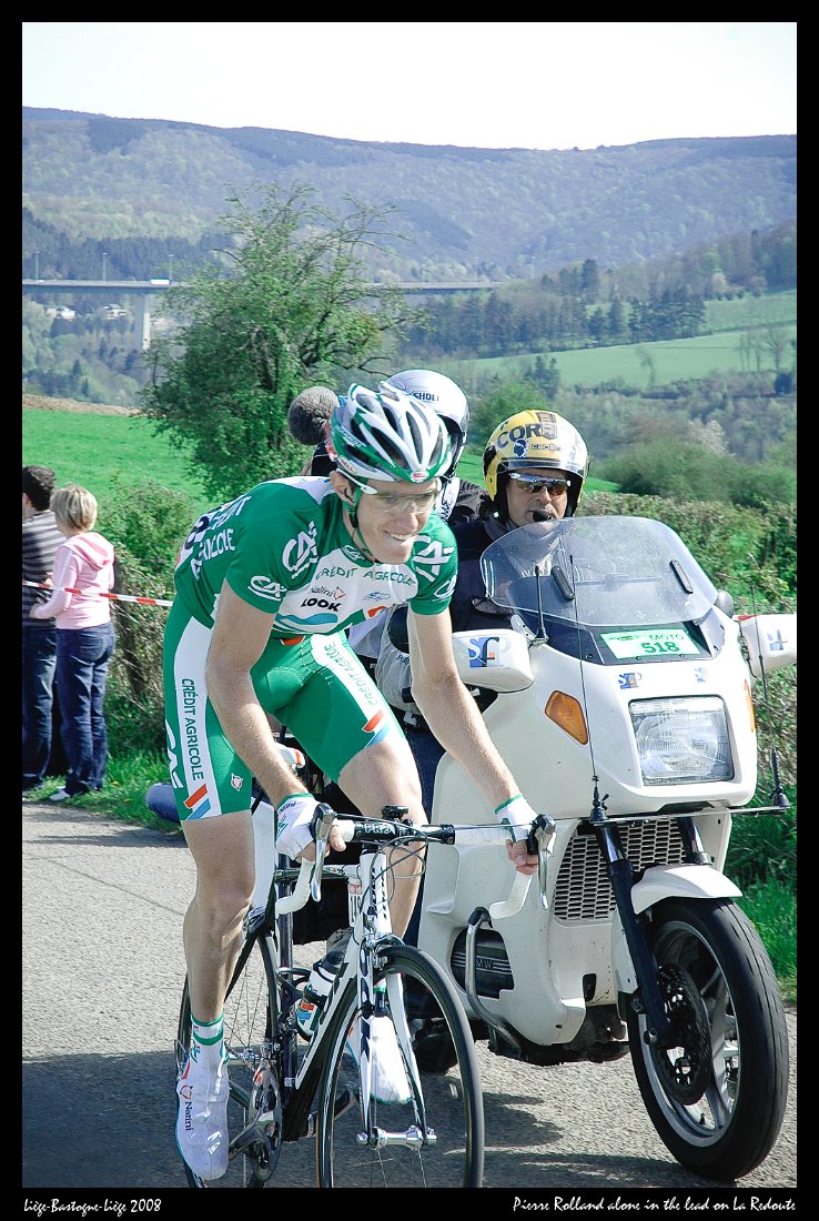 Pierre Rolland dropped his breakaway companions and leads up the Côte de la Redoute