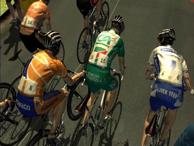 Looks like the C.A. rider could tip the bike over any second, and the Quick Step guy knows it...