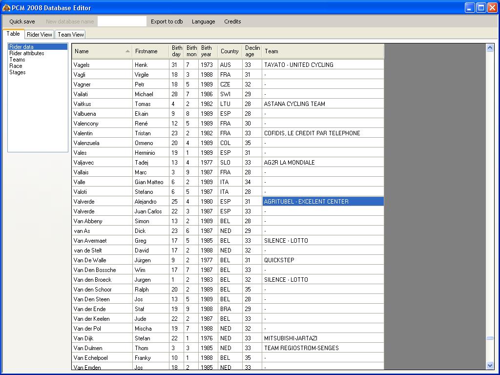 Valverde stops already when he's 31? :s but can you also change the names of riders/teams?