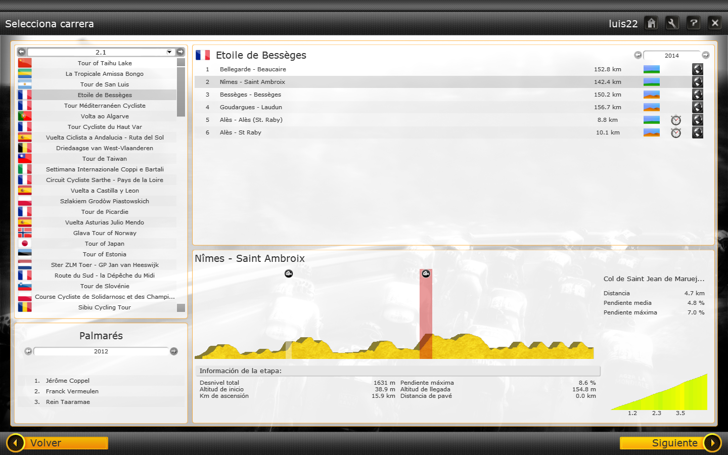 PCM.daily Stage Database: Etoile de Bessèges 2014, Stage 2 for PCM13 |
